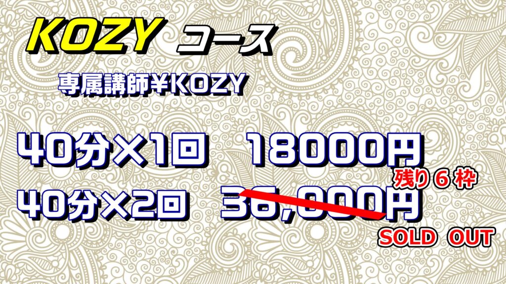 ・YOUTUBEでお馴染みのKOZY が専任担当するコース (各1ヵ月の料金です)